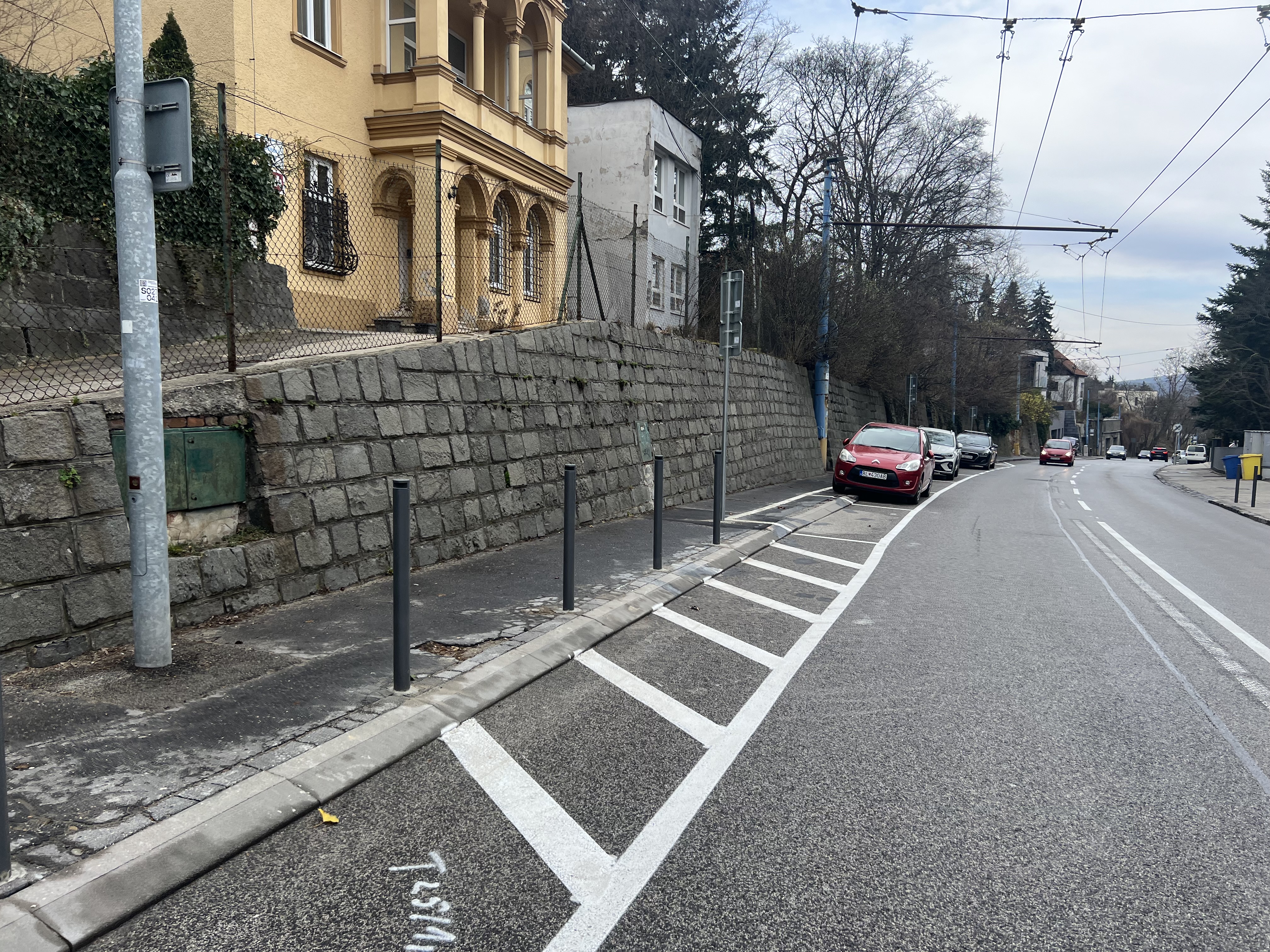 - pred priechodom pre chodcov boli na chodníkoch inštalované stĺpiky, ktoré majú zlepšiť rozhľadové pomery a zabrániť zastavovaniu áut na chodníku