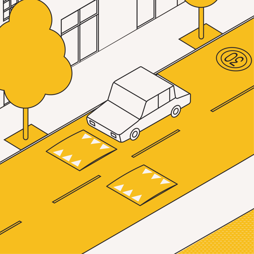 - zavádzanie zón 30 (znižovanie maximálnej povolenej rýchlosti) – znižovanie rýchlosti sa odporúča tam, kde je veľký pohyb ľudí – najmä v obytných zónach, v centre miest pri peších zónach, v okolí škôl a pod. – zníženie rýchlosti výrazne zvyšuje bezpečnosť chodcov*kýň v lokalite – zavedenie zóny 30 môže byť aj dočasné, napr. v ranných hodinách počas príchodu detí do škôl – tzv. Školské ulice