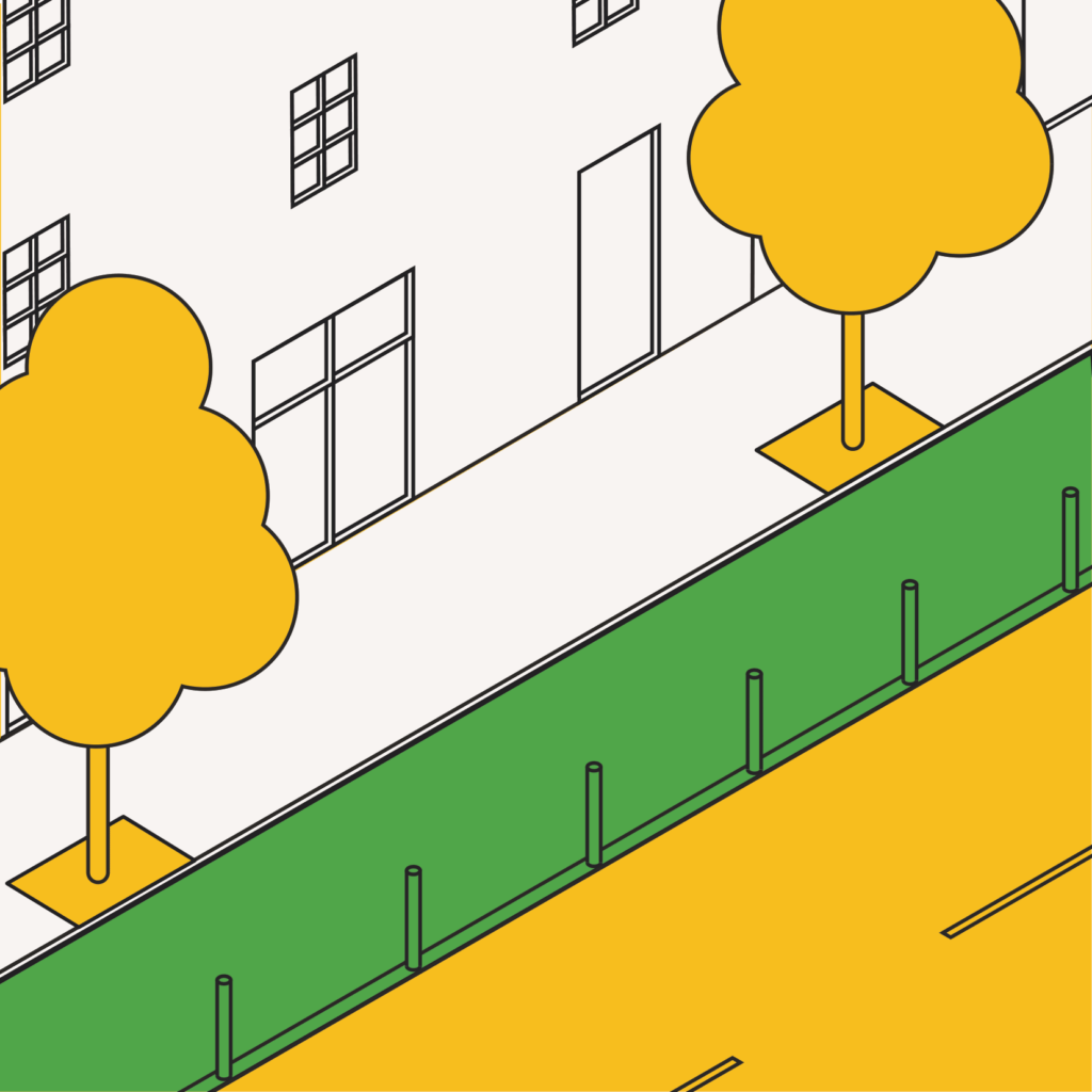 - zmena priestorového usporiadania ulíc – je úprava pomerov medzi jednotlivými zložkami ulice – vozovkou, chodníkmi, cyklopruhmi, parkovacími miestami a zeleňou. Cieľom je premena ulice z priestoru primárne určeného pre autá na priestor, ktorý je bezpečnejší a dostupnejší pre všetkých užívateľov (chodci*kyne, cyklisti, MHD).