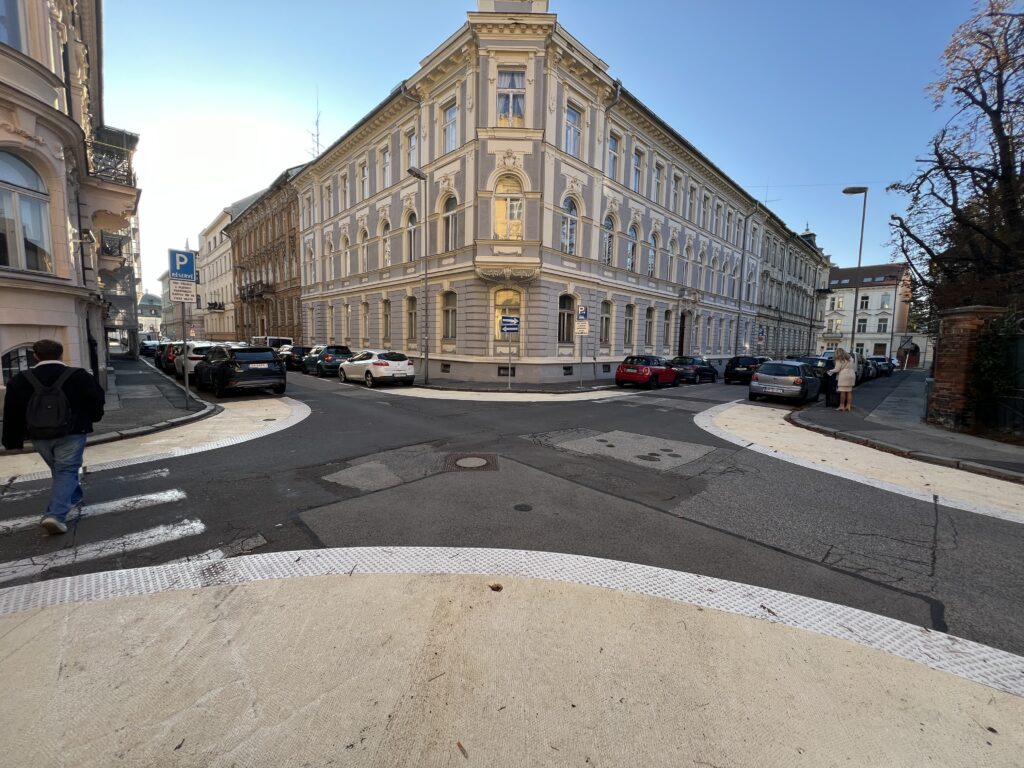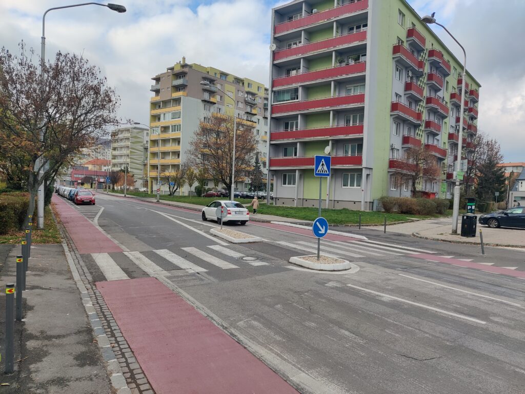 - Zmena geometrie križovatky Podjavorinskej a Zochovej vytvorením vysunutých nároží umožnila skrátenie priechodov pre chodcov a spomalenie vozidiel